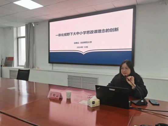 最后,吴晓云教授给思政课一线教师提出了针对性的建议,包括坚持“四个自信”讲政治讲党性、开拓视野,一体化推进“大思政课”教学改革创新等,对我院推进大中小学思政课一体化改革创新具有重要意义。