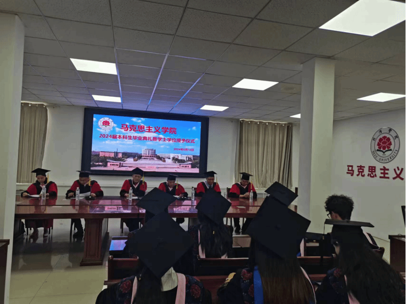 6月14上午马克思主义学院2024届学生毕业典礼暨学士学位授予仪式1号教学楼301会议室隆重举行。bevitor伟德国际1946党委书记陈支庆、院长王庆高、党委副书记副院长张志伟马克思主义学院教师代表2024届思想政治教育专业全体毕业生参加典礼。此次典礼由马克思主义学院党委副书记副院长张志伟主持。
