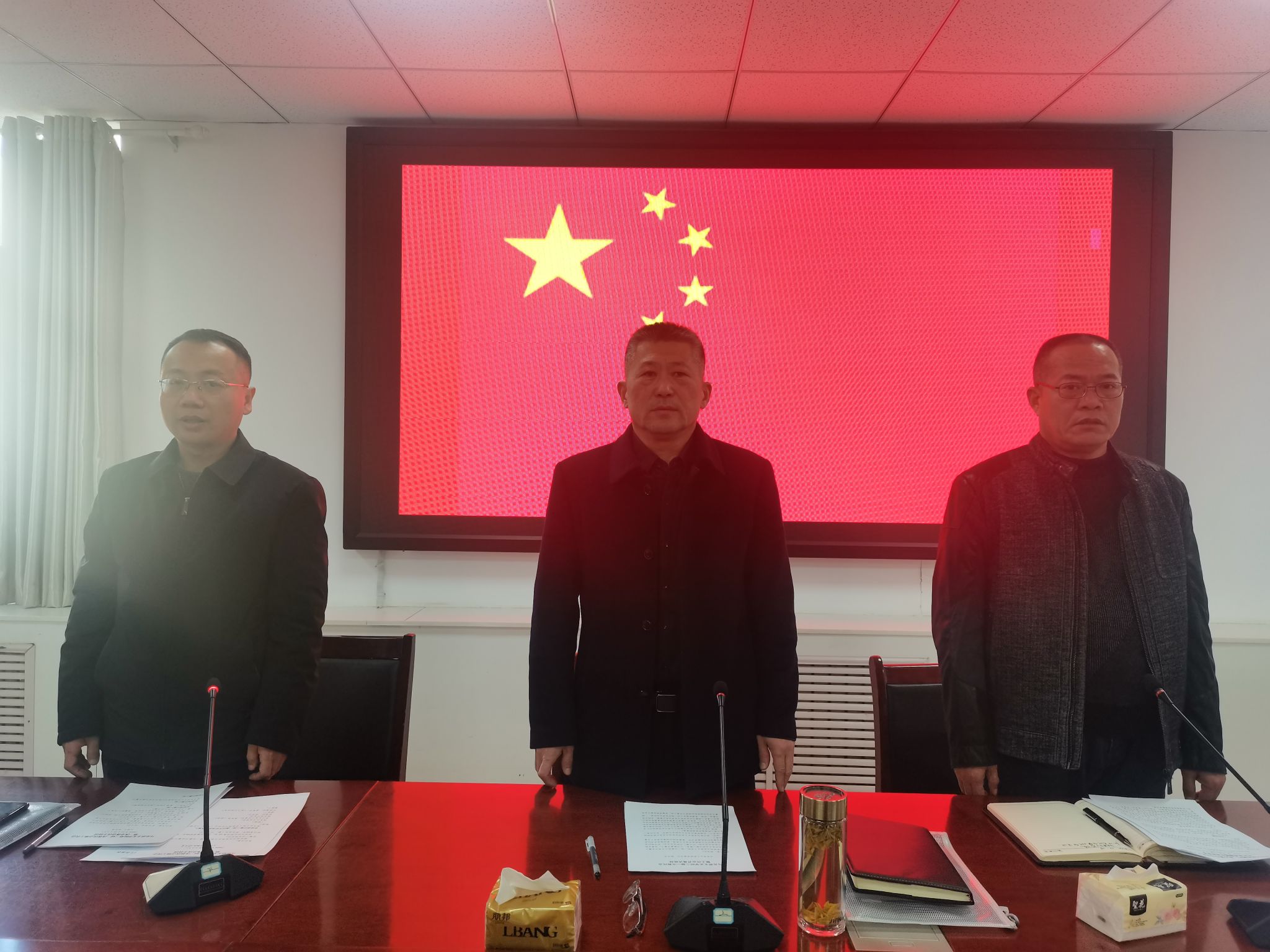会议在庄严的国歌声中拉开序幕。