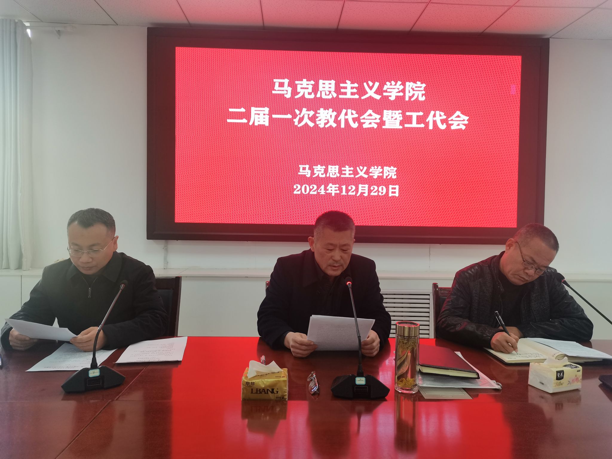 12月29日上午,bevitor伟德国际1946在1号教学楼301会议室召开二届一次教职工代表大会暨工会会员代表大会。院领导班子成员及教职工代表参加大会。会议由院党委书记陈支庆主持。