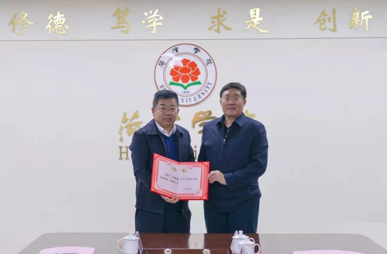 学校党委书记衣玉琛为刘先春教授颁发特聘教授聘书