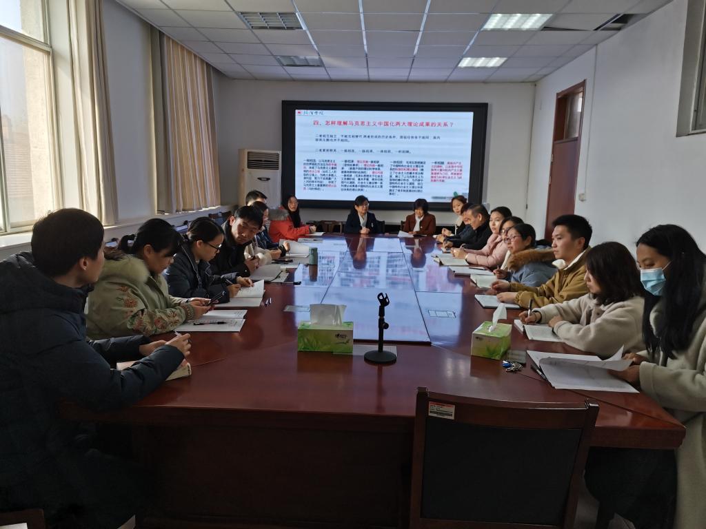 3月2日上午,我院概论教研室举行了“毛泽东思想和中国特色社会主义理论体系概论”课的第一次集体备课活动。集体备课活动旨在推动四史学习进教材、进校园、进课堂、进头脑,推进全校师生把党史学习变成共识和自觉,推动教研室集体备课规范化、常态化。集体备课由概论教研室主任管吉哲主持,教研室全体教师及相关任课教师参加。