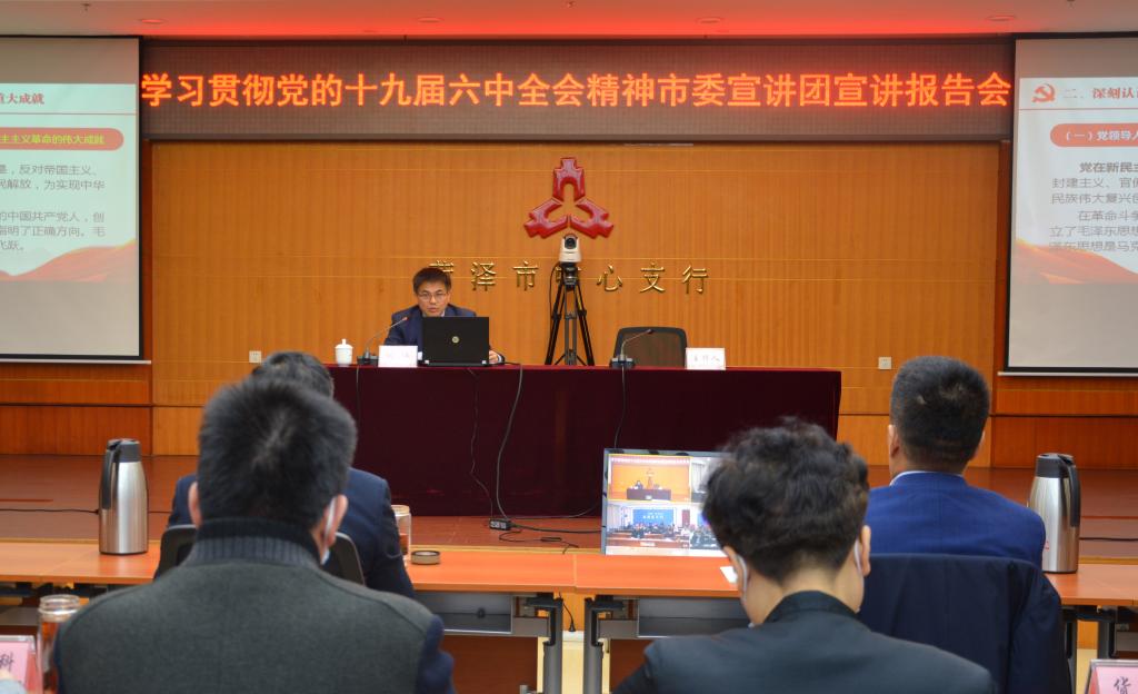 为全面深入学习宣传贯彻党的十九届六中全会精神,近日,市委宣讲团成员、校宣讲团成员、bevitor伟德国际1946院长、教授闫伟同志到菏泽市中心支行开展学习贯彻党的十九届六中全会精神专题宣讲。