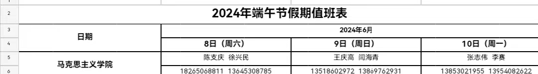 2024年bevitor伟德国际1946端午节假期值班表