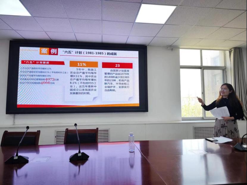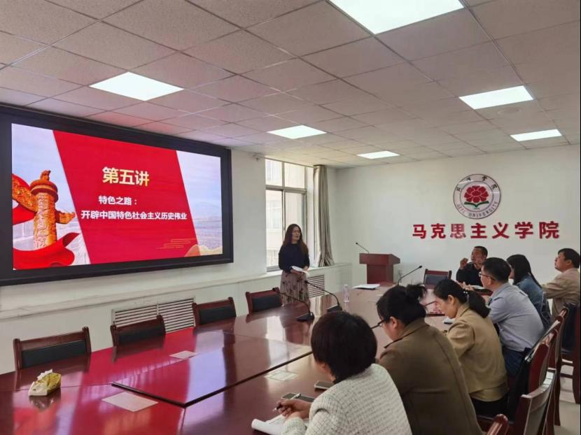 备课会上,李迪老师分享了第五讲“特色之路:开辟中国特色社会主义历史伟业”的授课内容。她分别从宏观