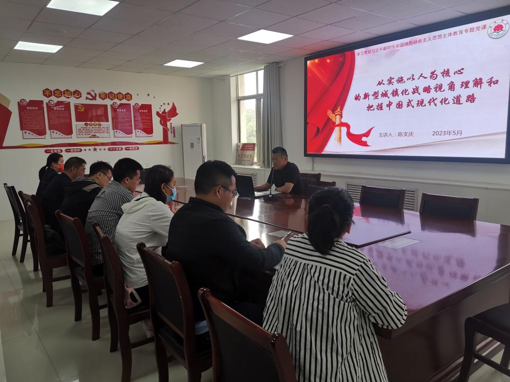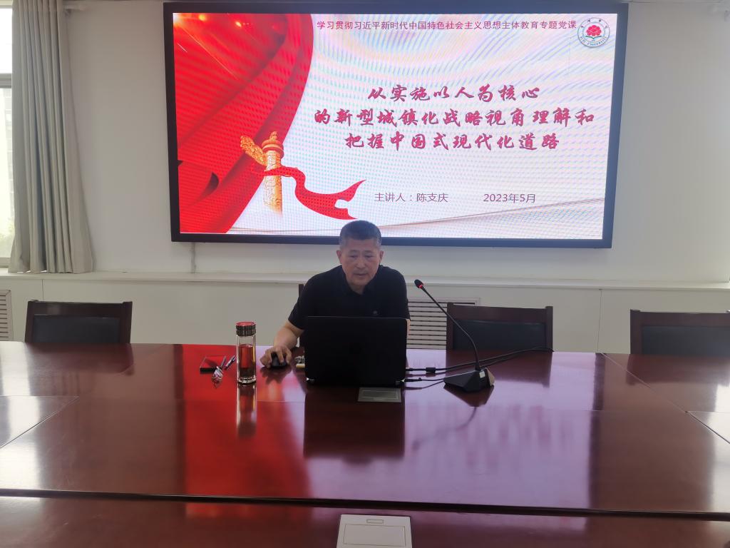 根据主题教育工作安排,5月11日下午,在1号教学楼301会议室,院党委书记陈支庆以《从实施以人为核心的新型城镇化战略视角理解和把握中国式现代化道路》为形势与政策党支部上学习贯彻习近平新时代中国特色社会主义思想主题教育专题党课。形势与政策党支部全体党员参加。