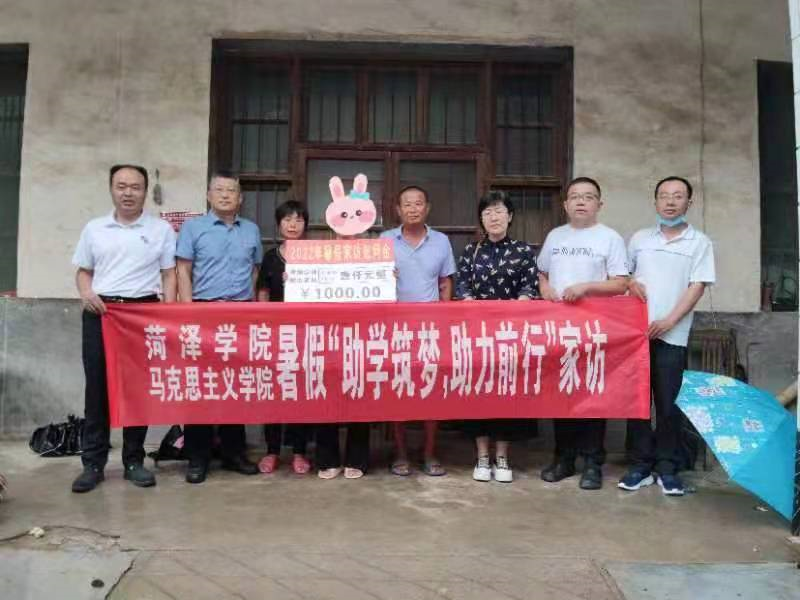 7月8日上午,学生工作处副处长刘夏菡、bevitor伟德国际1946党委书记陈支庆、党委副书记柳杨、辅导员欧安欣、班主任代表张志伟等一行不顾高温酷暑,前往巨野走访慰问我院2019级困难学生。