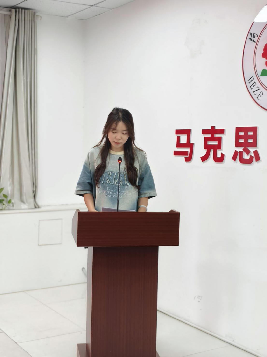 接着,高年级代表、24级思政专业1班团支部书记曹卓同学则以“过来人”的身份分享经验。她回忆起一年前初入校园时的懵懂与迷茫,对比如今的成长与蜕变,鼓励学弟学妹们珍惜大学时光,努力成长为“让自己眼前一亮”的人。