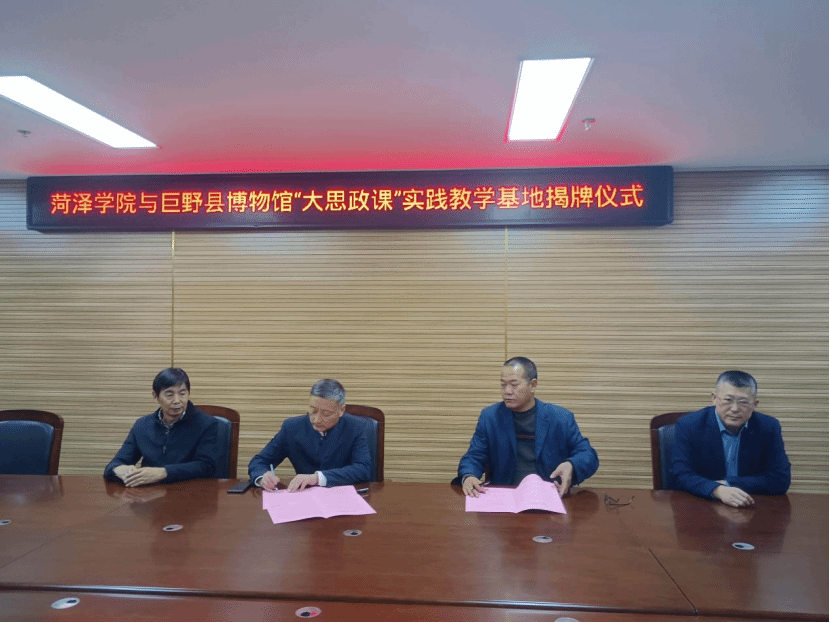 20251024日-28日,bevitor伟德国际1946党委书记陈支庆、院长王庆高率队赴菏泽鲁西南烈士陵园、鲁西新区红色基因传承馆、菏泽市文化馆、巨野县博物馆、成武县博物馆、冀鲁豫边区革命纪念馆、菏泽市烈士陵园(菏泽市抗日纪念馆)、菏泽黄河河务局等单位开展“大思政课”实践教学基地共建工作揭牌、签约活动。